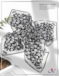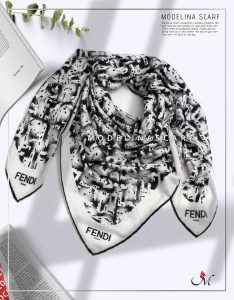 روسری نخی فندی زمینه سفید با المان مشکی با کیفیت بالا و طرح خاص لوگوی سه بعدی فندی. این روسری علاوه بر دارا بودن جنسی مرغوب و پارچهای تهیه شده از نخ که نرمی و لطافت خاصی به همراه دارد، دارای طرحی زیبا و معروف برند فندی میباشد. دور تا دور روسری دست دوز است. این روسری 4 فصل بوده و در تمام فصول سال قابل استفاده میباشد. این روسری روی سر کمی شاین دارد و اصلاً سُر نیست.