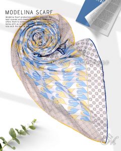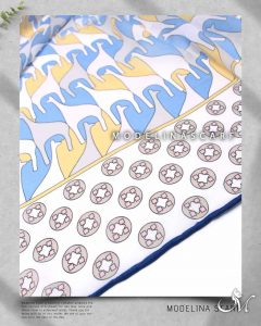 روسری نخ گارزا با طرح فانتزی و جذاب و رنگبندی ملیح ، قواره این روسری نخی گارزا ۱۳۵ است و دور دست دوز است.