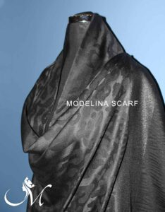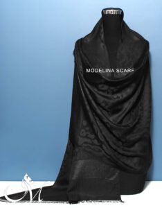 شال نخی مشکی ژاکارد پلنگی لمه دار مدلینا