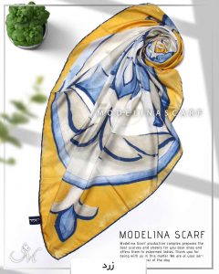 روسری نخی مدلینا با طیفی از رنگ های زرد-نارنجی با بژ و آبی بسیار زیبا و دلنواز. قواره این روسری ۱۳۵ است. دور تا دور روسری دست دوز است. این روسری 4 فصل بوده و در تمام فصول سال قابل استفاده میباشد. این روسری روی سر کمی شاین دارد و اصلاً سُر نیست.