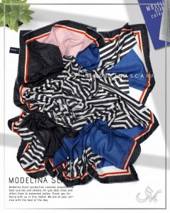 روسری نخی مدلینا با زمینه سرمه ای مشکی شیک و مونوگرام طرح ژاکادر ،مناسب مجالس و مهمانی ها. قواره این روسری 120 و دست دوز است. این روسری مجلسی مناسب مهمانی و مناسبتهای مختلف میباشد. از باکیفیتترین پارچههای نخ با طراحی عالی، سبک، نرم و لطیف بودن آنها در کنار متریال درجه یک از ویژگیهای منحصر به فرد این روسری است و به خوبی نیز روی سر قرار میگیرند و لیز نمیباشند.