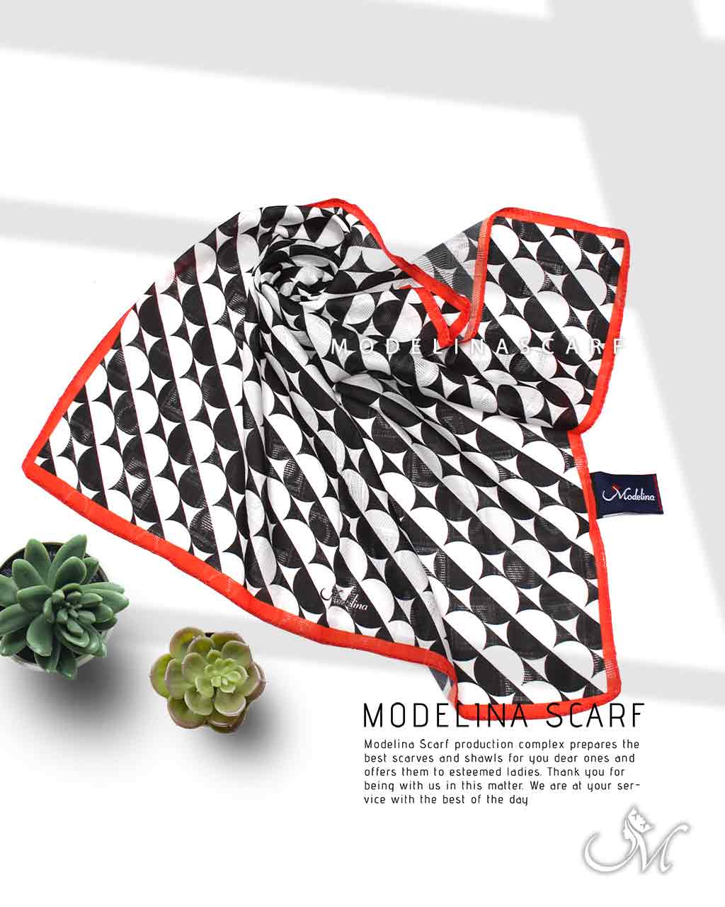 روسری قواره کوچک ژاکارد M13 با تک رنگ سفید و مشکی و ذور قرمز مناسب استایل اسپرت است و به راحتی می توان با انواع استایل آن را ست کرد.