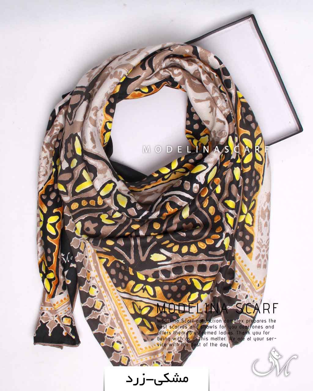 روسری نخی بهاره مدلینا 1240 با طرح بسیار زیبا و 6 رنگ بندی شیک مشکی-سبز، طوسی، نسکافهای، مشکی-زرد، سرمهای و کرم قابلیت ست شدن با اکثر لباسها را دارد و توانسته طرفداران زیادی از همه سنین را جذب خود کند.