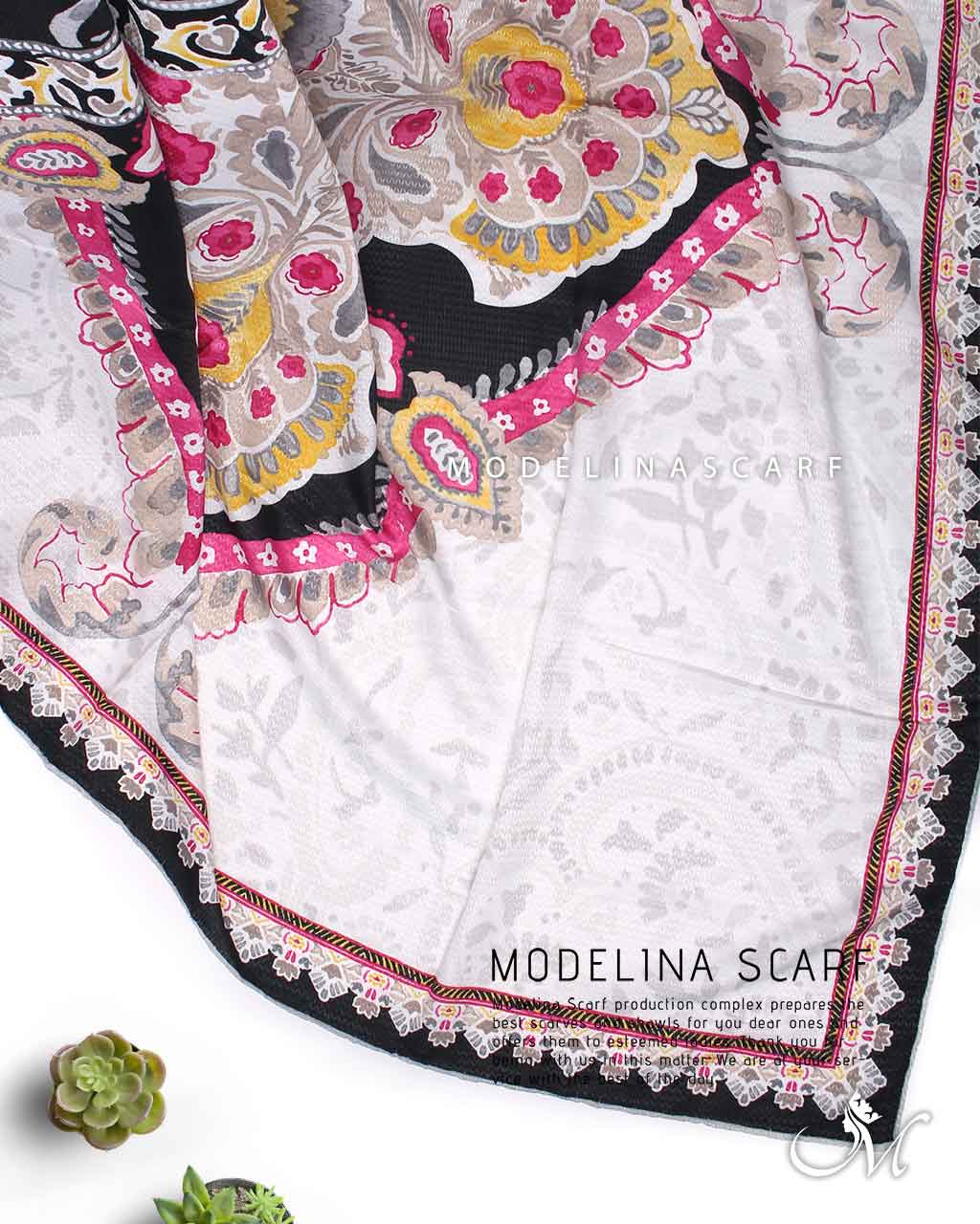 روسری نخی مدلینا 1072M3 با طرح های فوق العاده زیبا و کیفیت عالی با رنگ بسیار شیک.از ویژگی های این روسری براق بودن متریال و چاپ با کیفیت بر روی پارچه است. قواره این روسری 134 بوده و دور تا دور روسری دست دوز است. این روسری نخی اصلا لیز نیست و بر روی سر کاملا ایستایی دارد.
