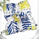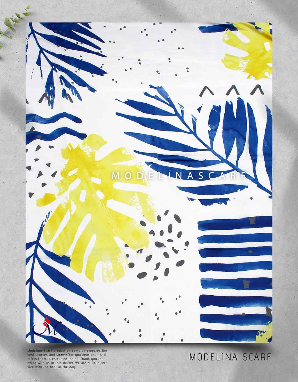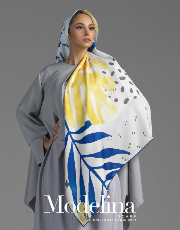 روسری زمینه سفید با المان های آبی و زرد سبک هاوایی بسیار خاص و چشم نواز است. قواره این روسری ۱۳۵ است. دور تا دور روسری دست دوز است. این روسری 4 فصل بوده و در تمام فصول سال قابل استفاده میباشد. این روسری روی سر کمی شاین دارد و اصلاً سُر نیست.