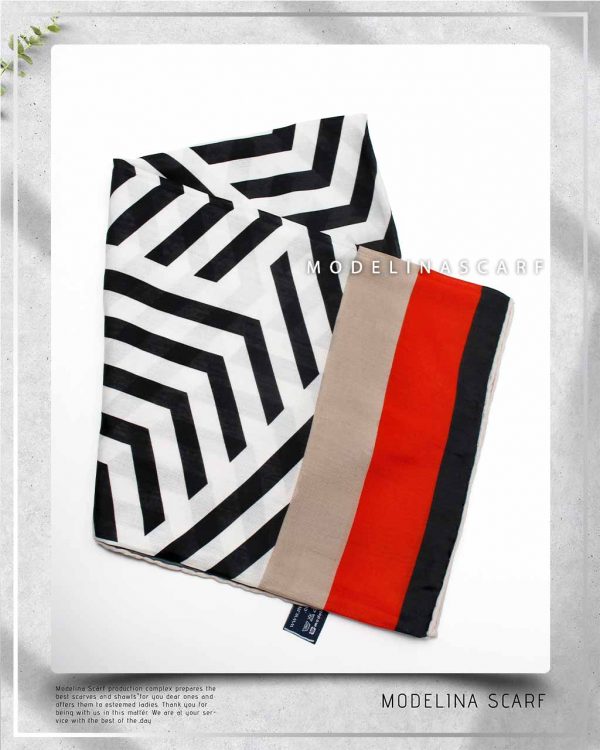 روسری نخی مدلینا با حاشیه قرمز و زمینه هندسی سفید و مشکی بسیار زیبا و دلنواز. قواره این روسری ۱۲۰ است. دور تا دور روسری دست دوز است. جنس این روسری تمام نخ است و سبک و راحت است. اصلاً سُر نیست.