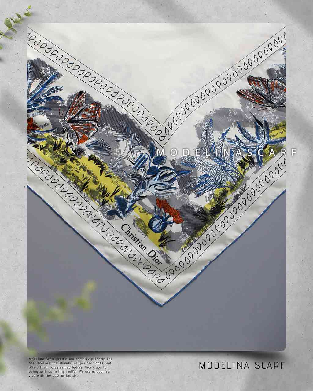 دیور یک برند فرانسویست که تولیدکننده پوشاک و کالاهای لوکس است جنس این روسری دیور نخ و حاشیه این روسری دست دوز است. این روسری مجلسی قابل استفاده در 4 فصل سال ومناسب مهمانی و مناسبتهای مختلف میباشد. اندازه این روسری 120 است و از باکیفیتترین پارچههای نخ با طراحی عالی، سبک، نرم و لطیف بودن آنها در کنار متریال درجه یک از ویژگیهای منحصر به فرد این روسری است و به خوبی نیز روی سر قرار میگیرند و لیز نمیباشند.