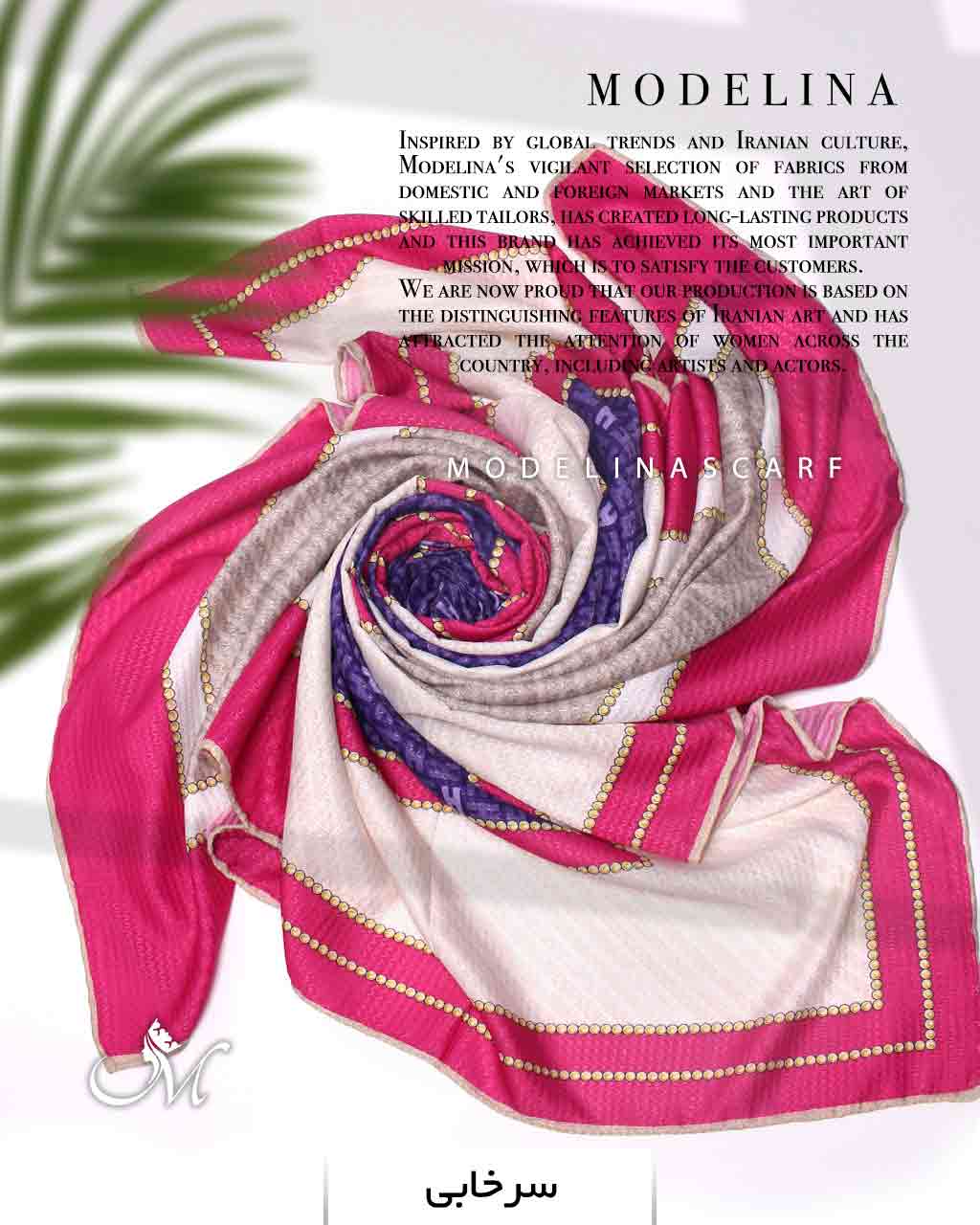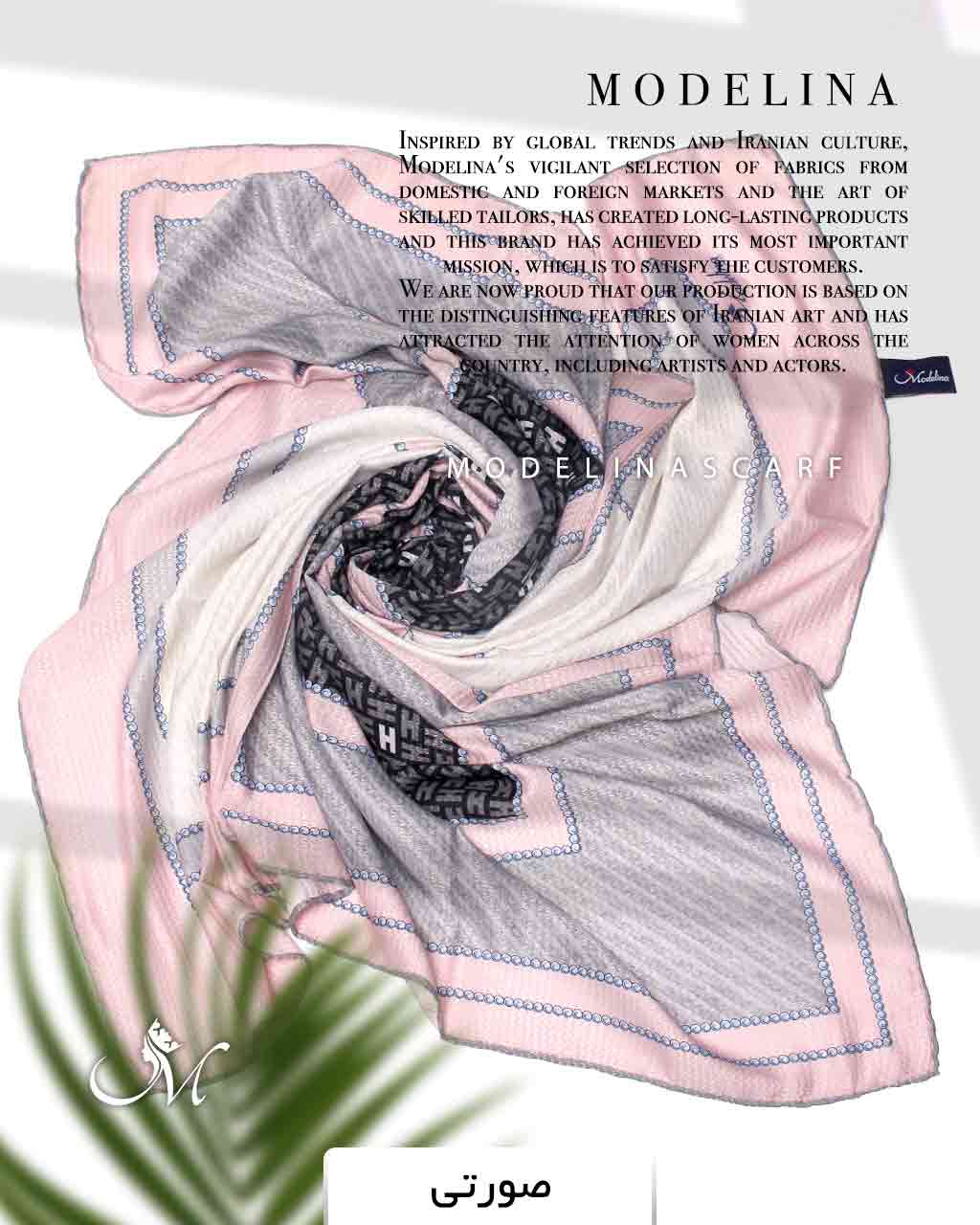 روسری نخی سبک, همراه با طرح بسیار جذاب . قواره این روسری ۱۳۵ است. دورتادور روسری دستدوز است. جنس این روسری تماماً نخ است و طرح ژاکارد ریز دارد که باعث میشود چرخش هوا در این روسری بهراحتی حاصل شود همچنین این روسری اصلاً سُر نیست.
