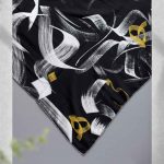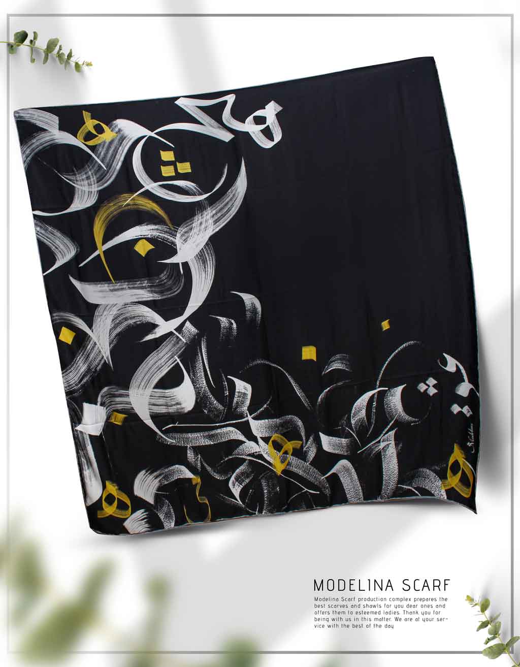 هیچ عاشق سخن سخت به معشوق نگفت, روسری مشکی نخی هیچ با المانهای زرد و نارنجی بسیار خاص و منحصر به فرد. روسری نخی هیچ با المانهای فارسی نویسی در قواره ۱۳۵ و دور دست دوز. این روسری 4 فصل بوده و در تمام فصول سال قابل استفاده میباشد. این روسری روی سر کمی شاین دارد و اصلاً سُر نیست.