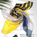 روسری طرح مینیمال بسیار خاص و چشم نواز .قواره این روسری نخی گارزا ۱۳۵ است و دور دست دوز است.