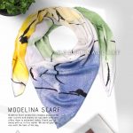 روسری بسیار ملیح و لطیف دخترانه با ترکیب رنگ و نقش های بهاره شاد و زیبا. قواره این روسری ۱۳۵ است. دور تا دور روسری دست دوز است.