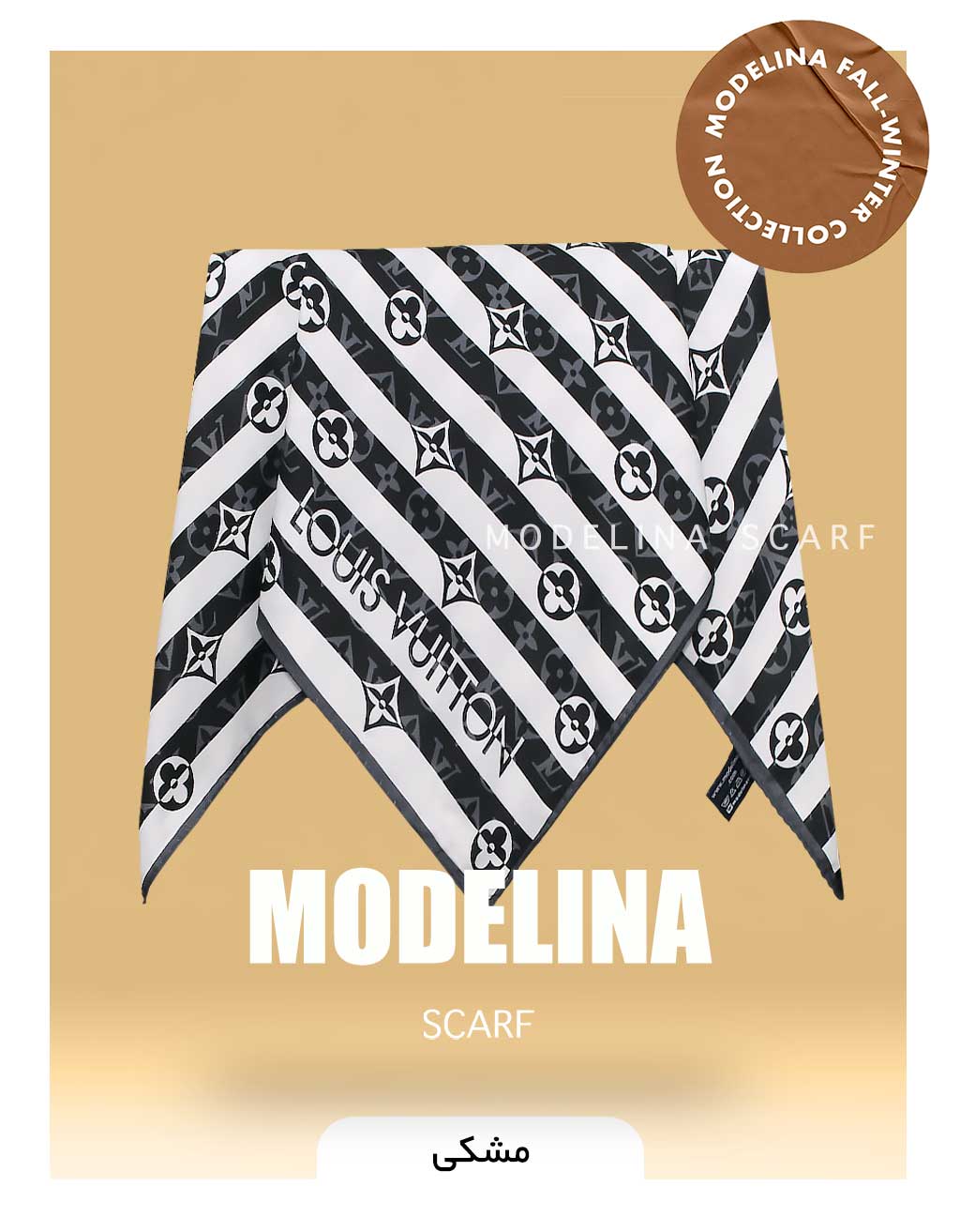 روسری نخ پنبه لویی ویتون با طرح جذاب و محبوب و در رنگ بندی مشکی – قهوه ای مناسب فصل پاییز و بهار است.