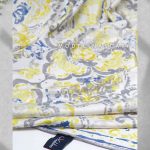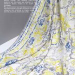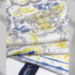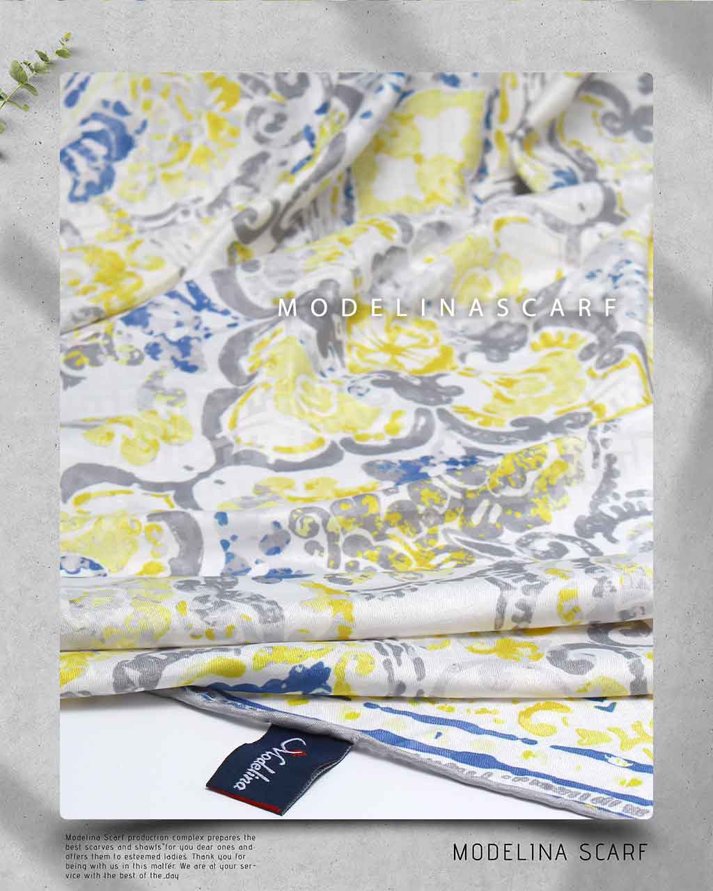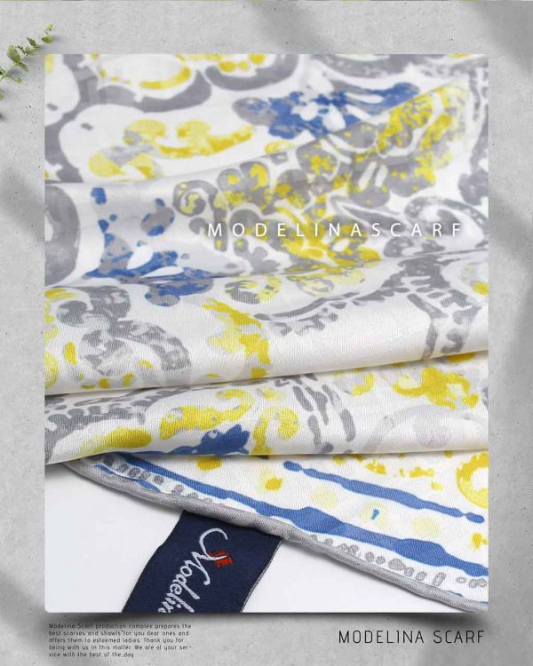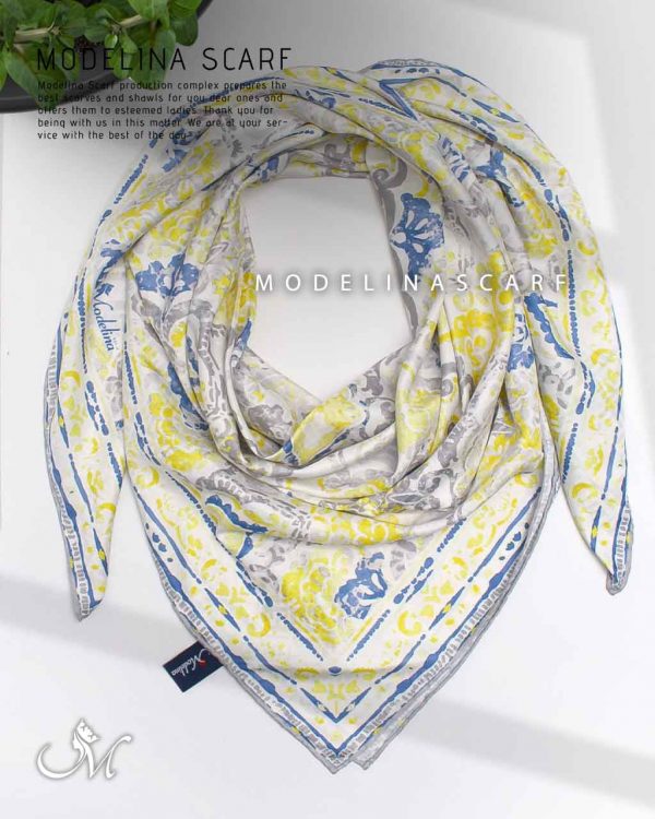 روسری ژاکارد مدلینا با طیف رنگی طوسی زرد رنگ محبوب سال ۱۴۰۰ همراه با لوگوی ژاکارد بسیار شکیل و زیباست.روسری ژاکارد به علت نوع بافت اش بسیار با دوام و محکم است و عمر طولانی ای دارد. ویژگی اصلی روسری ژاکارد طرح روی آن است که به جای چاپ داخل تار و پود پارچه بافته شده است. این روسری مجلسی قواره ۱۳۵ است و دور تا دور کار دست دوز بوده.