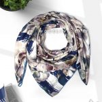 روسری ژاکارد مدلینا با طرح گل و ژاکارد شنل Chanel بسیار شکیل و زیبا.روسری ژاکارد به علت نوع بافت اش بسیار با دوام و محکم است و عمر طولانی ای دارد. ویژگی اصلی روسری ژاکارد طرح روی آن است که به جای چاپ داخل تار و پود پارچه بافته شده است. این روسری مجلسی قواره ۱۳۵ است و دور تا دور کار دست دوز بوده.