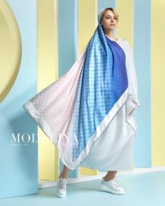 روسری ژاکارد به علت نوع بافت اش بسیار با دوام و محکم است و عمر طولانی ای دارد. ویژگی اصلی روسری ژاکارد طرح روی آن است که به جای چاپ داخل تار و پود پارچه بافته شده است. روسری ژاکارد LV با طیف زیبای طوسی ، صورتی و آبی همراه با لوگوی ژاکارد لویی ویتون بسیار شکیل و زیباست. این روسری مجلسی قواره ۱۳۵ است و دور تا دور کار دست دوز بوده.