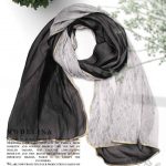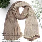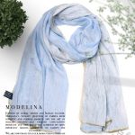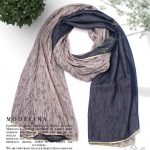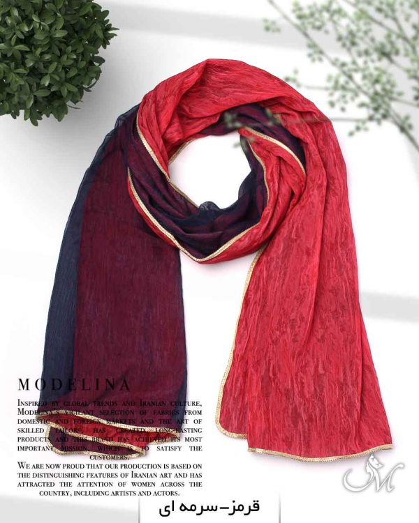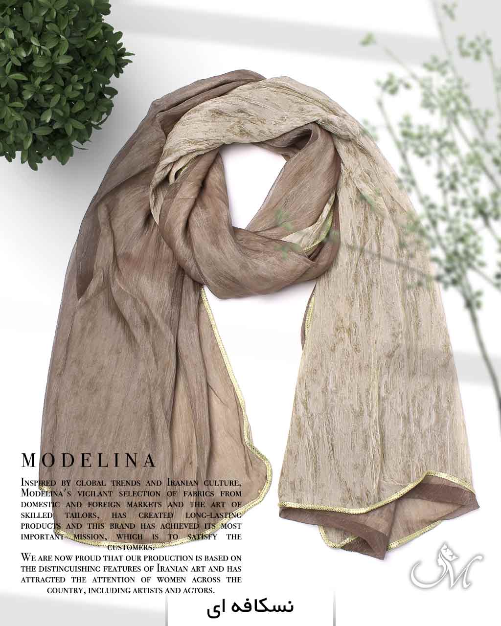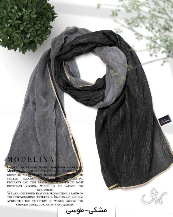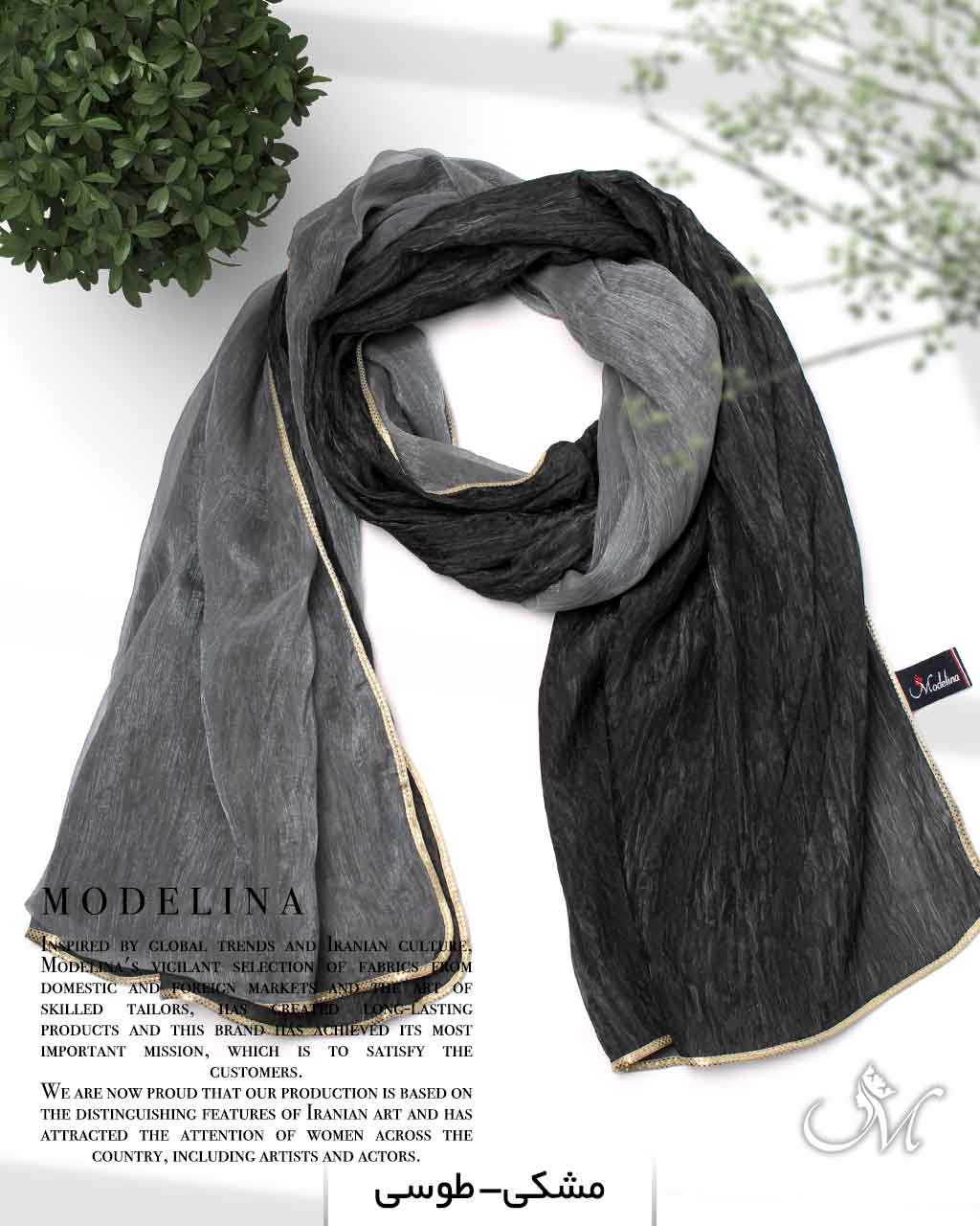 شال حریر ابریشم دولایه مدلینا 1029 با رنگبندی های مشکی-طوسی، سفید-مشکی، نسکافه ای، سفید-آبی روشن، قرمز-سرمه ای و سرمه ای-نسکافه ای و یک طرف شال از حریر ساده و طرق دیگر حریر طرحدار دارد. داشتن لبه مغزی دوزی شده از لیز بودن این شال جلوگیری میکند.
