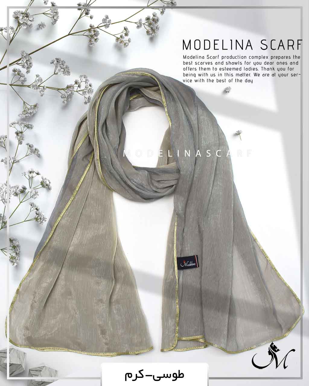 شال حریر دولایه مدلینا 1000 با لبههای مغزی دوزی طلایی و رنگبندی های مشکی-سفید، طوسی-کرم، طوسی-آبی جین، مشکی-نسکافه ای، سرمه ای-قرمز، مشکی-سرخابی، زرشکی -مشکی، یاسی -نقره ای، نارنجی -مشکی و طوسی-مشکی و همچنین باکیفیت و با دوام است. هر دو رو ساده و تک رنگ و دارای سایز ۷۰*۱۸۰ است و این کار مناسب استایل رسمی و مهمانیها است.