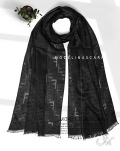 / شال مشکی نخی ژاکارد فندی 10425M8