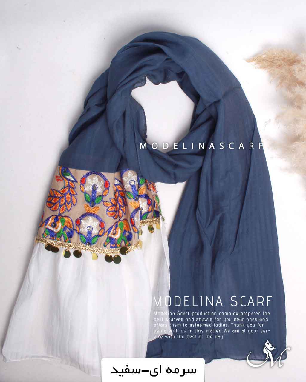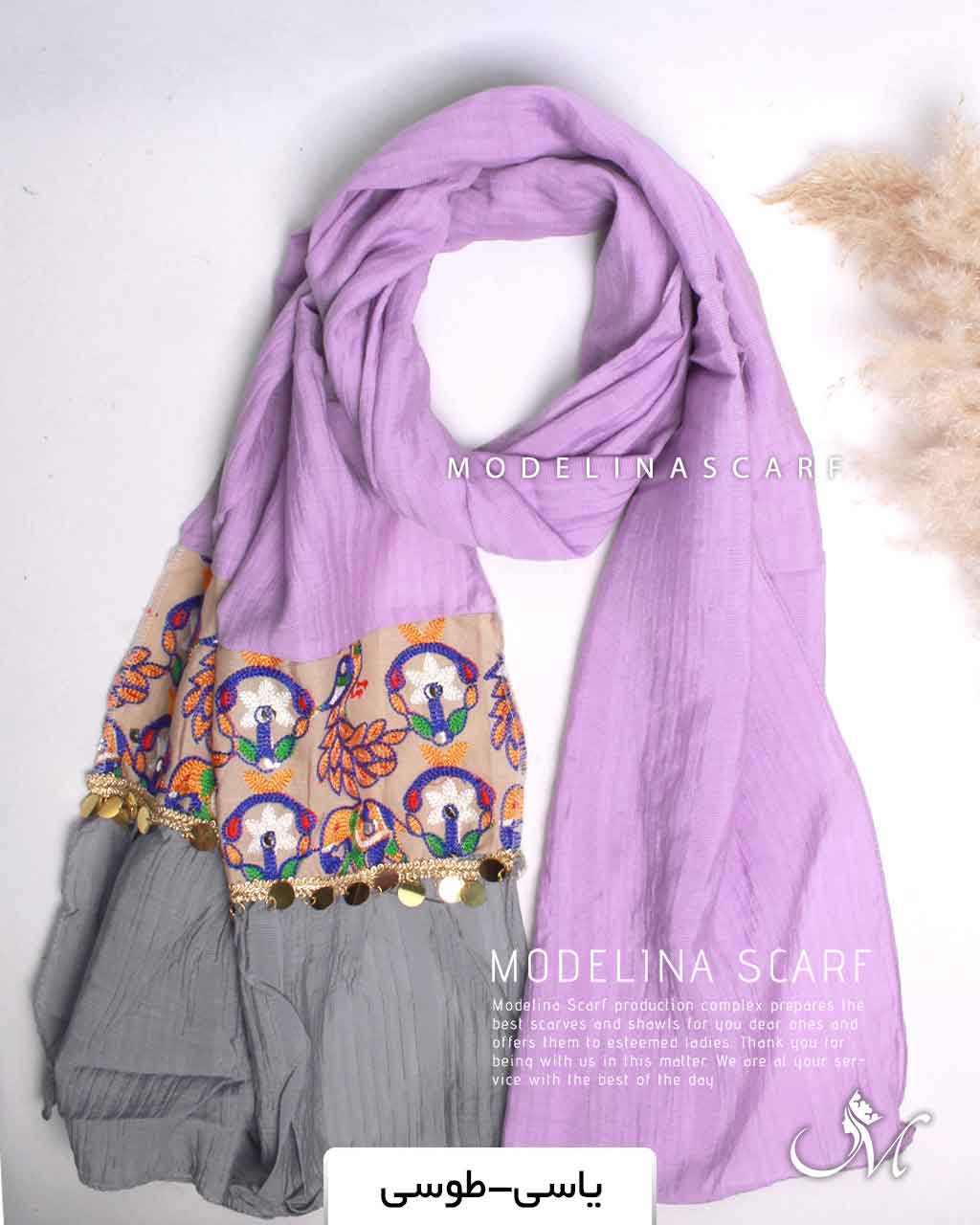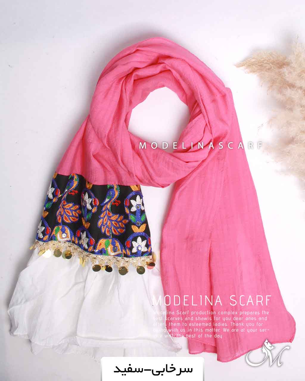 شال نخی هندی(وارداتی)1355 با طراحی منحصر به فرد و رنگ بندی زیبای سرخابی-سفید، سرمهای-سفید، یاسی-طوسی، کرم-سبز، طوسی-سرمهای، نسکافهای-خردلی، مشکی-سبز، سفید-سبز و خردلی-سبز و سایز 70*190 مناسب استایل بهار و تابستان است.