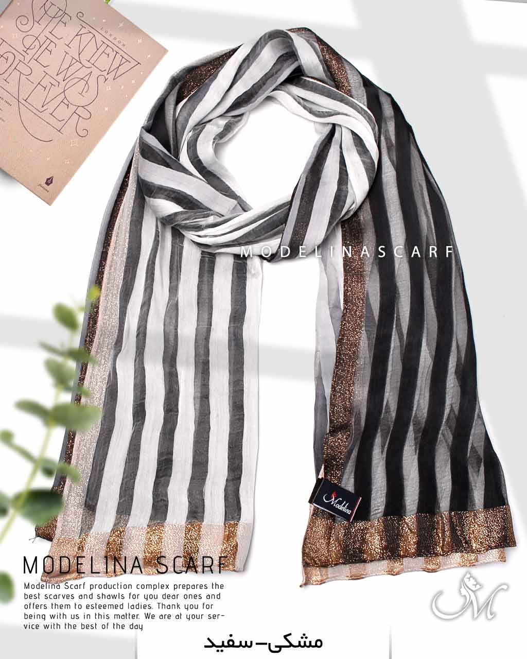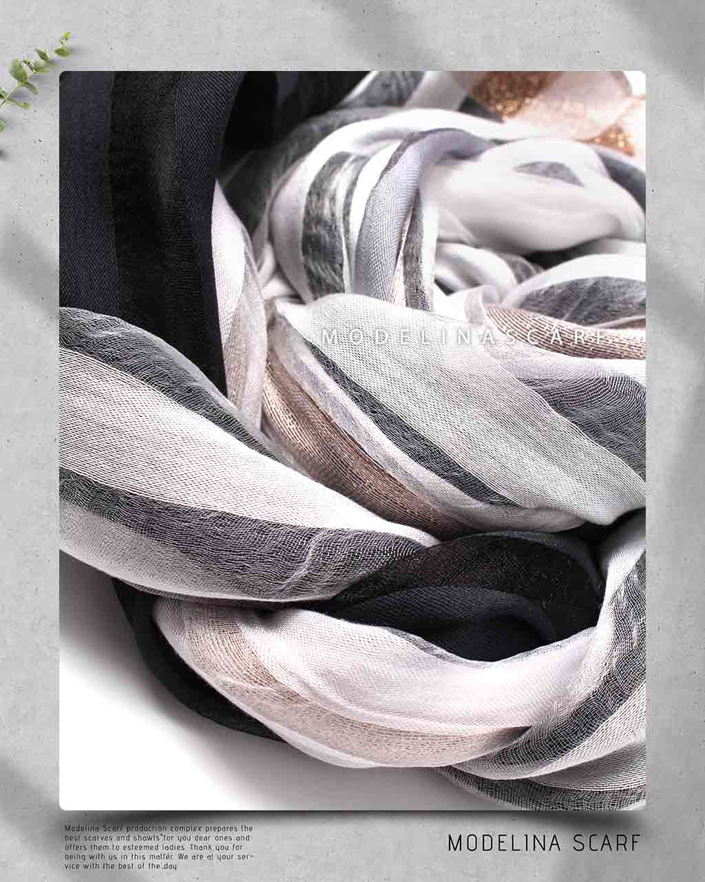 شال نخ ابریشم لمه دار مدلینا 1016، در فصل گرما چهبهتر از یک شال طیفی خنک است که ست کردن راحت دارد و با لمه های بافتهشده برق خاصی بهصورت شما میبخشد.