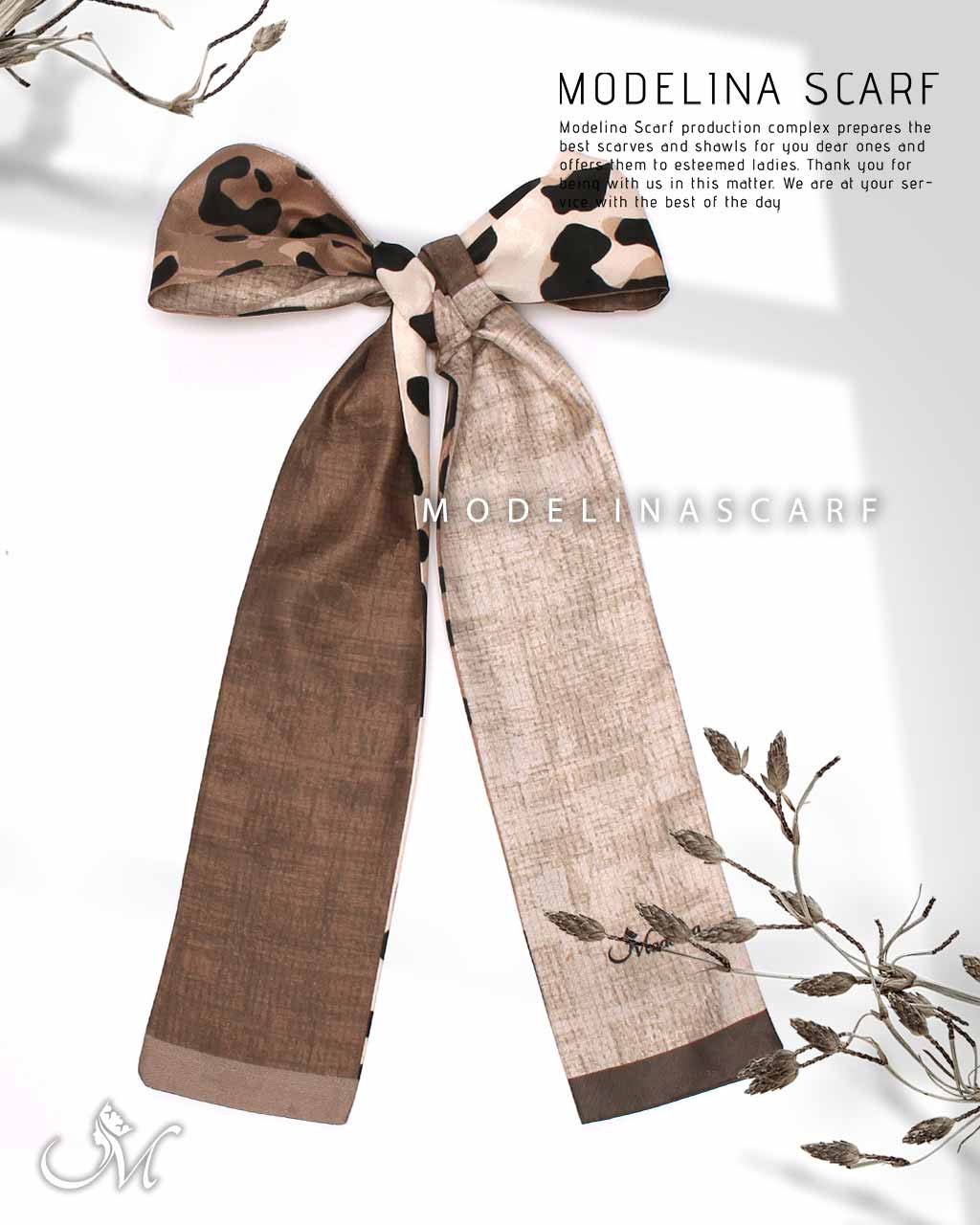 1055M14 دستمال سر و گردن مدلینا  در رنگ‌بندی جذاب قهوه ای – کرم و متریال درجه A+