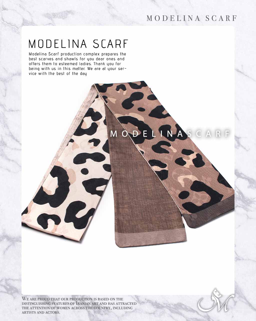 1055M14 دستمال سر و گردن مدلینا در رنگبندی جذاب قهوه ای – کرم و متریال درجه A+