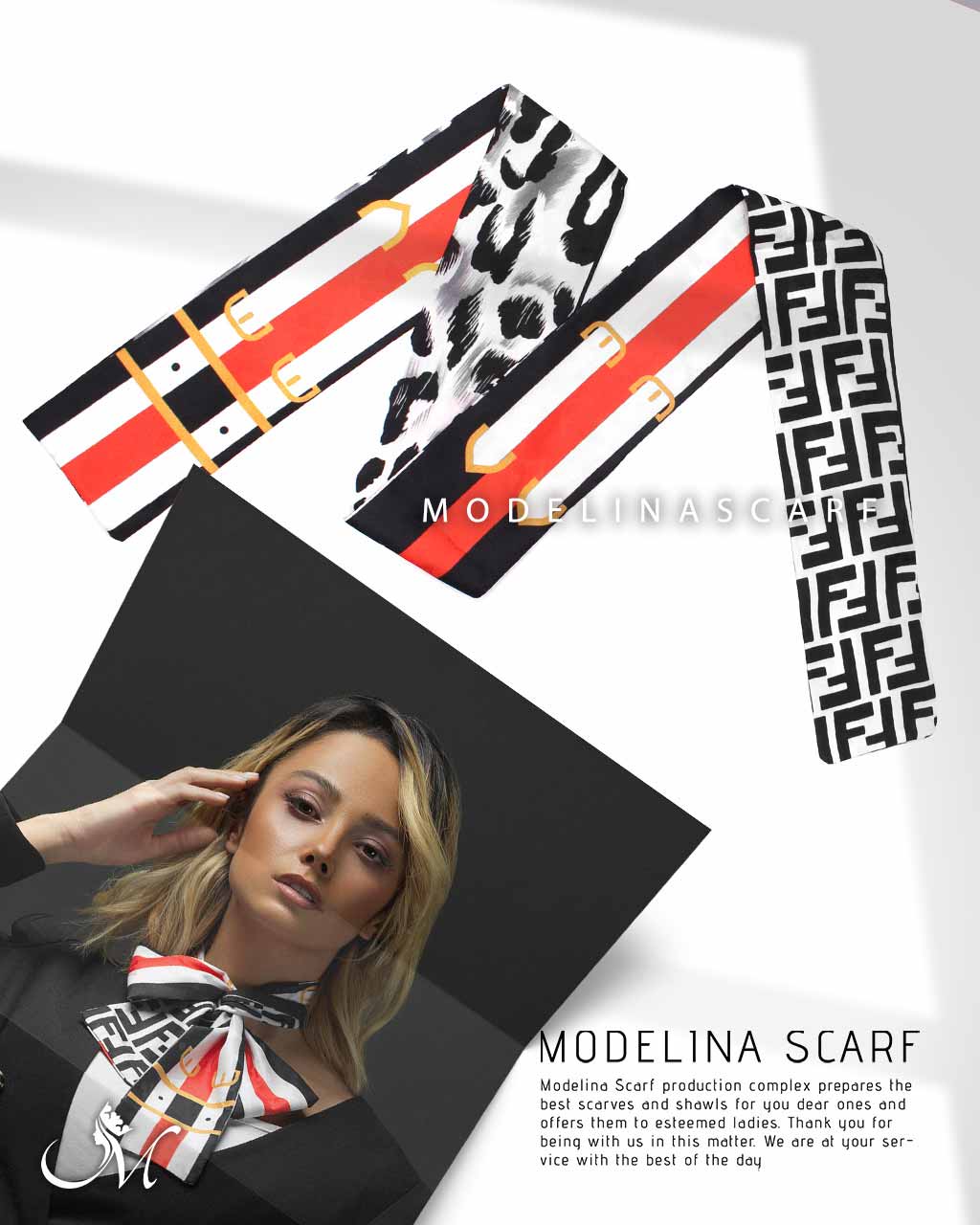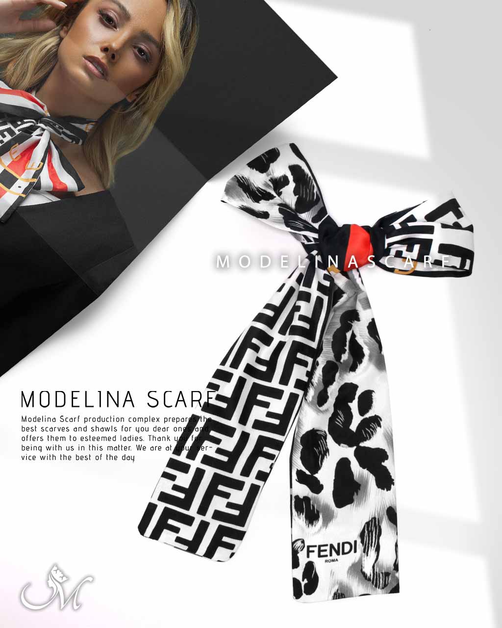1055M7 دستمال سر و گردن با طرح Fendi یا همان فندی در رنگبندی جذاب مشکی و سفید و متریال درجه A +
