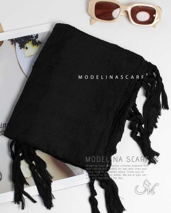 / 1625m3 شال نخی پلیسه مشکی